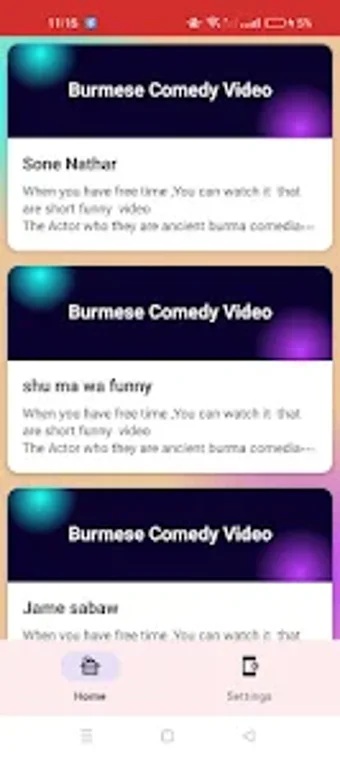 تطبيق All Kar Funny TV هو تطبيق مجاني لنمط الحياة مصمم لمستخدمي أندرويد، يقدم مجموعة رائعة من مقاطع الفيديو الكوميدية البورمية. يتميز التطبيق بواجهة سهلة الاستخدام مع علامتين رئيسيتين: علامة الصفحة الرئيسية، حيث يمكن للمستخدمين الوصول بسهولة ومشاهدة مجموعة متنوعة من المحتوى الكوميدي الترفيهي، وعلامة الإعدادات، التي تتيح خيارات التخصيص، بما في ذلك تغييرات السمة. يضمن هذا التصميم البسيط أن يتمكن المستخدمون من الاستمتاع بعروضهم الكوميدية المفضلة دون أي متاعب.